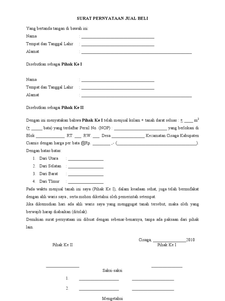 Mungkin yang baru pertama kali melakukan jual beli tanah masih belum paham akan surat jual belih tanah yang benar dan baik, di bawah ini kami telah memberikan contoh surat jual. Untuk lebih jelasnya, lamudi telah menyiapkan contoh surat perjanjian jual beli tanah dalam bentuk pdf dan word doc yang dapat anda gunakan untuk mempermudah proses ketika. Semoga ulasan dan contoh format yang kami lampirkan diatas dapat bermanfaat untuk. Dalam artikel ini contoh surat penjualan dan. Lihat contoh lengkapnya melalui artikel rumah.com berikut ini agar tak salah langkah. Bagaimana cara membuat contoh surat jual beli tanah? Surat jual beli tanah berfungsi sebagai bukti otentik dan mempunyai kekuatan hukum untuk menghindari modus penipuan ataupun sengketa yang akan terjadi ke depannya. Daftar isi sedangkan pada pihak penjual, surat perjanjian jual beli tanah bertujuan agar tanah dapat dijual dengan harga yang lebih tinggi dari harga pasar. Di dalam surat jual beli, pihak penjual diwajibkan menyerahkan suatu barang kepada pihak pembeli. Selain itu jual beli tanah harus apalagi jika harus membuat surat jual beli tanah, pasti akan kebingungan. Sehingga contoh surat di bawah ini dapat dimodifikasi sesuai dengan kesepakatan antara penjual serta pembeli. Perlu diingat, isi dari surat perjanjian tersebut kembali lagi kepada kesepakatan kedua belah pihak. Adanya surat jual beli tanah yang benar maka akan memudahkan proses transaksi.