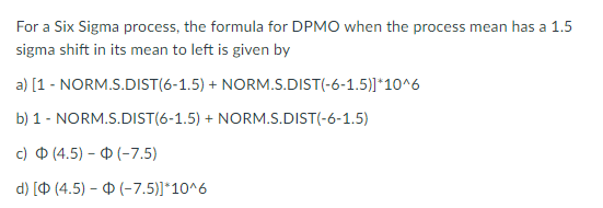 Dpmo Formula - Solved Question 28 In Order To Use The Dpmo Formula How M Chegg Com - I'm trying to calculate a dpmo rate however when i introduce my formula the result is completly different that what i expect.. Process standard deviation (*) can be estimated to be s or can be figured using the following formulas: This concept we used to hear in the production and most of the time it is used by manufacturing who. We will talk about what empirical formula and molecular formula are, how they are different, and we'll learn how to write the empirical formula for a. Dpmo formula (defects per million opportunities). Voltas company is in the business of air conditioner so every month they used to manufacture air conditioner as per demand in the market.